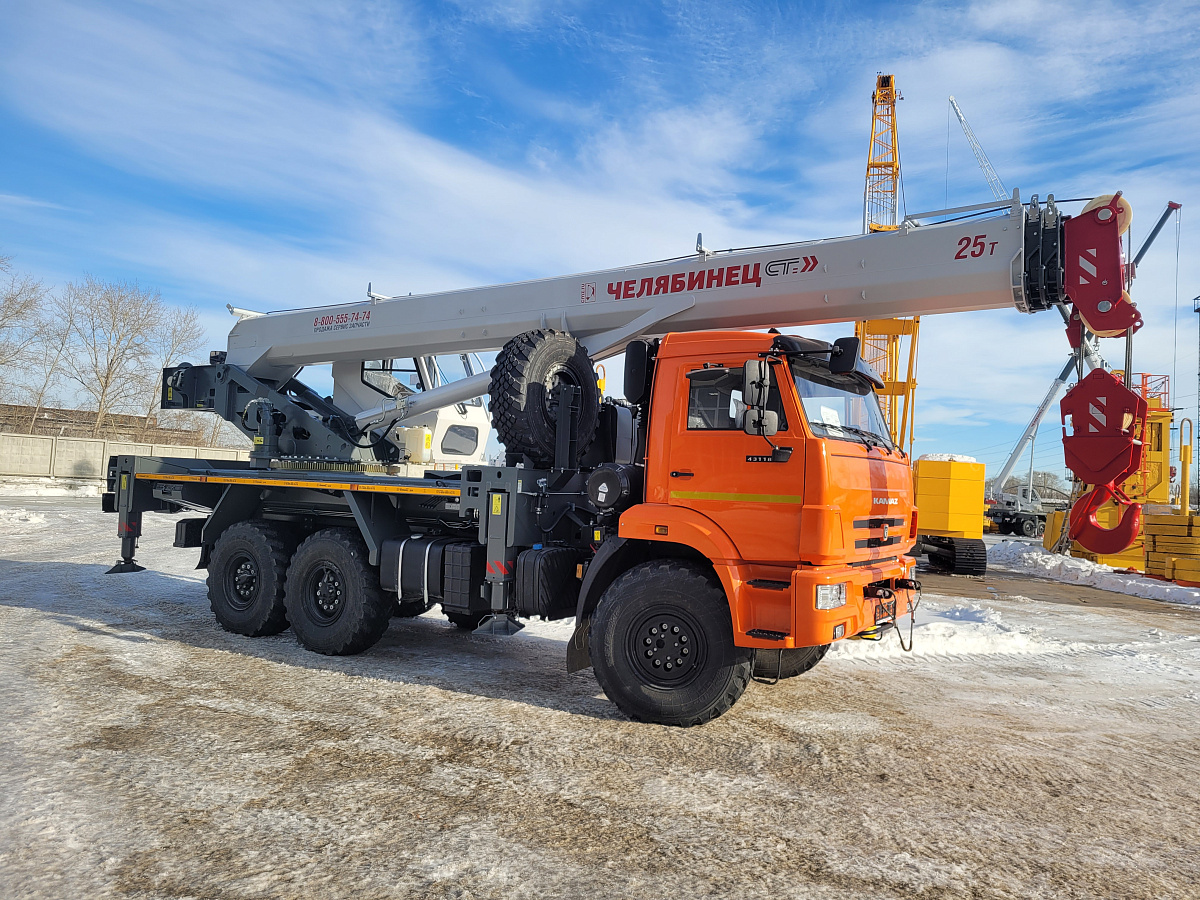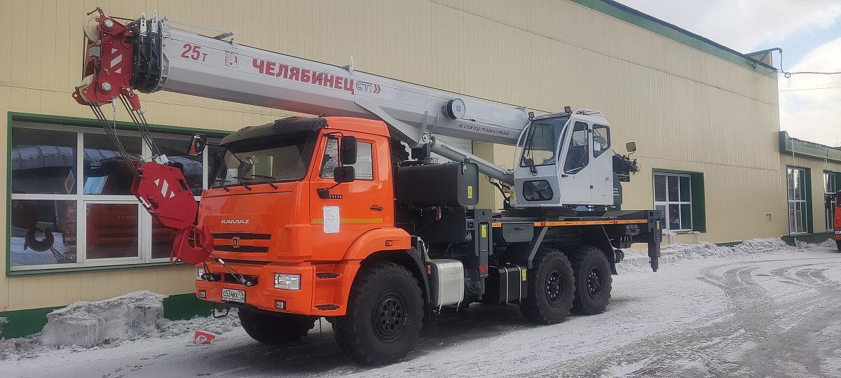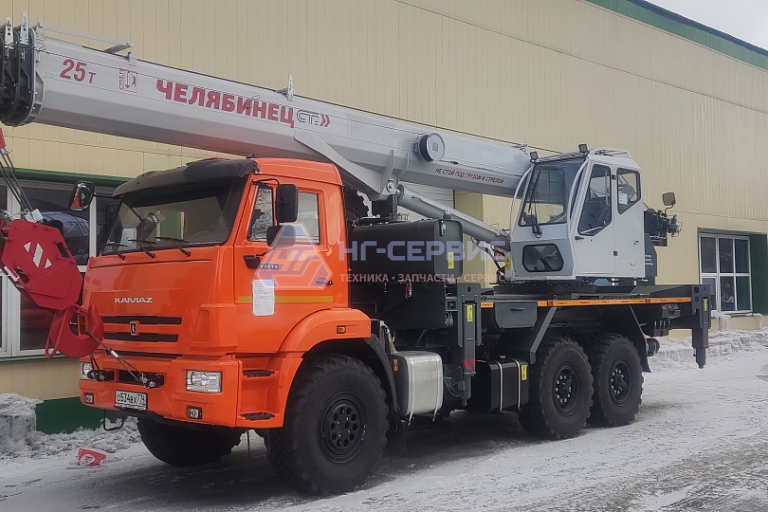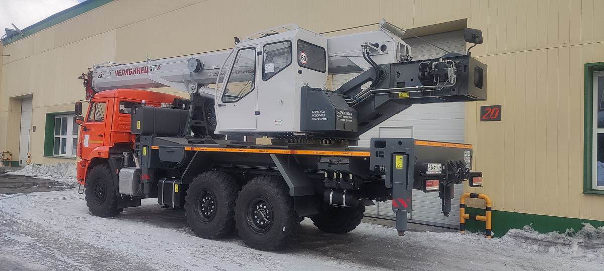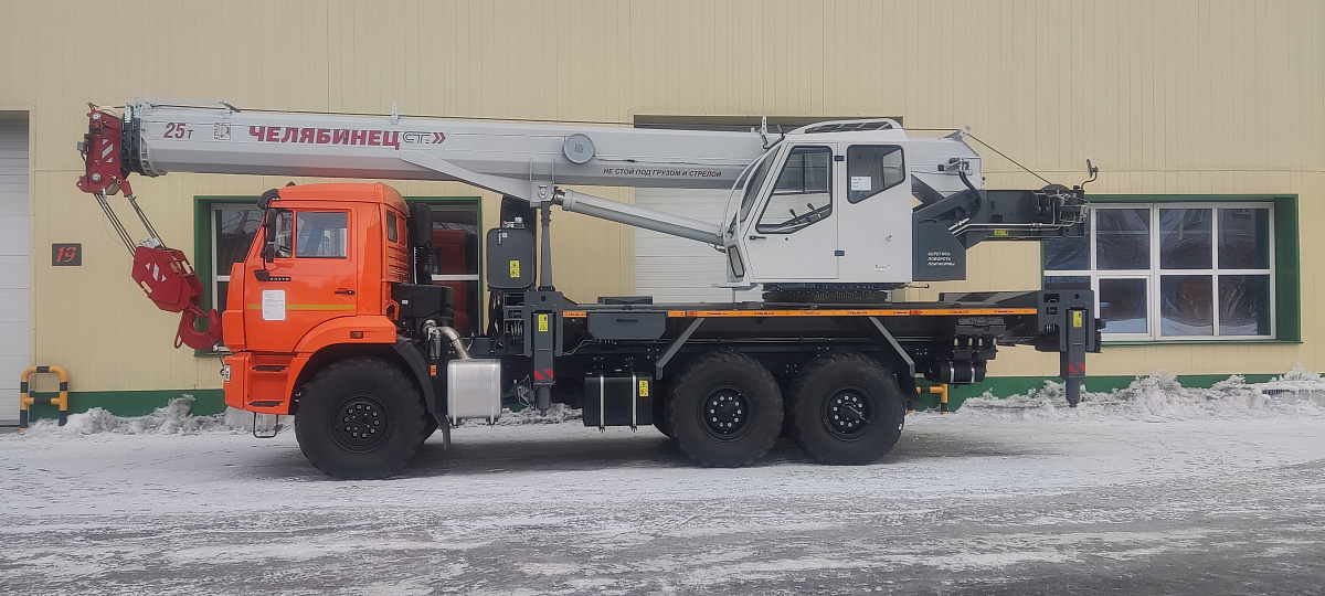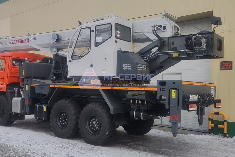 Базовое исполнение: четырехсекционная стрела овоидного профиля; крюковая обойма г/п 25т.; грузовая лебедка с планетарным редуктором и дисковым тормозом; подготовка под установку противовесов; просторная комфортабельная кабина оператора, утепленная изолирующим материалом; эргономичное кресло оператора; органы управления - рычаги, отопитель кабины оператора, предпусковой подогреватель двигателя шасси, температура эксплуатации ±40˚С.