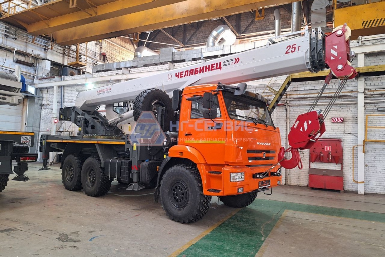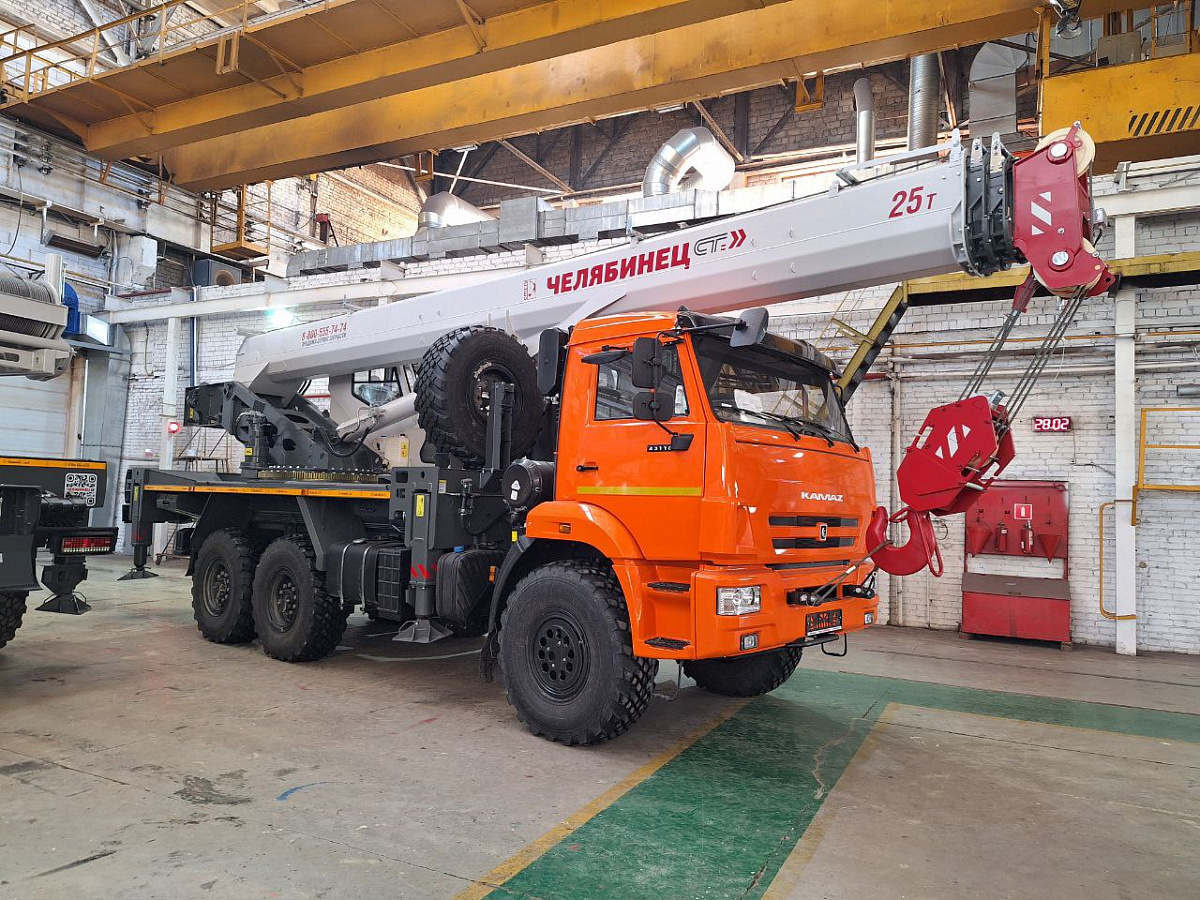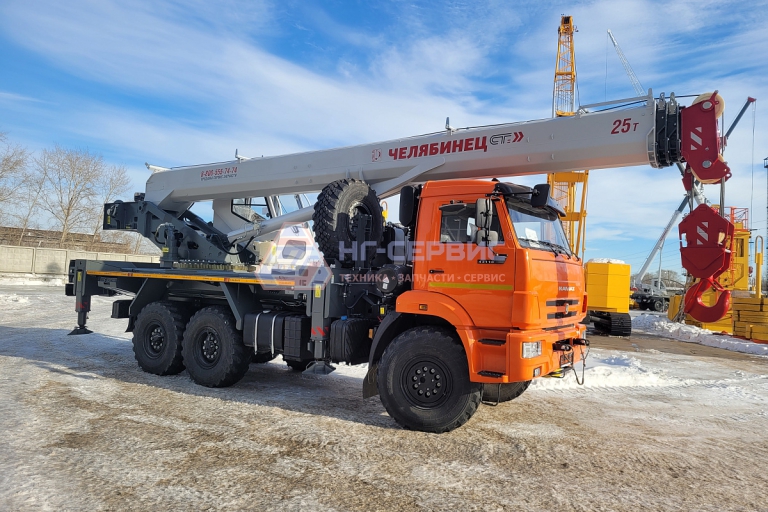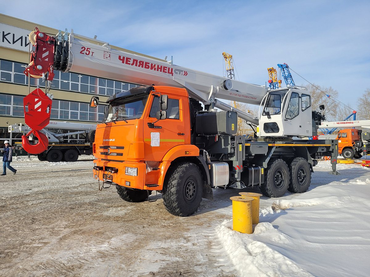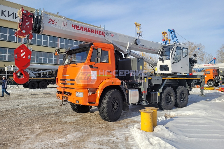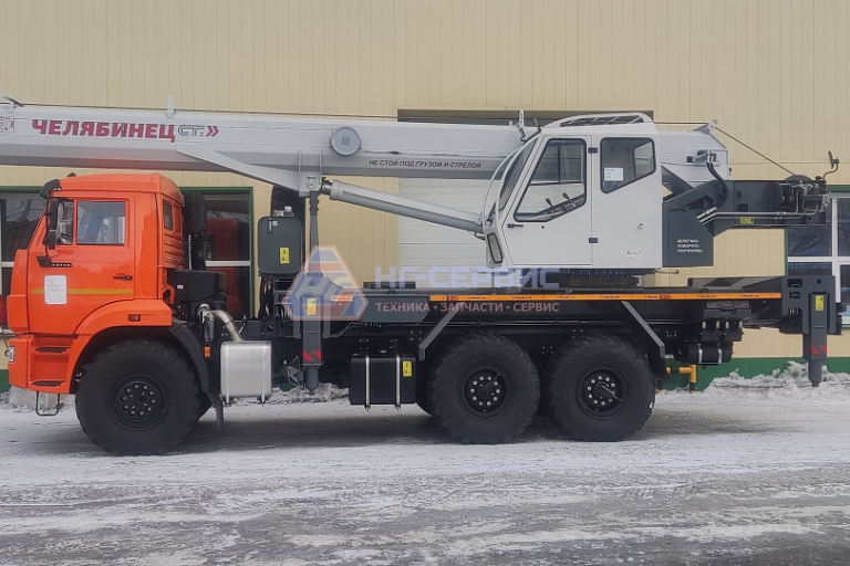 Базовое исполнение: четырехсекционная стрела овоидного профиля; крюковая обойма г/п 25т.; грузовая лебедка с планетарным редуктором и дисковым тормозом; подготовка под установку противовесов; просторная комфортабельная кабина оператора, утепленная изолирующим материалом; эргономичное кресло оператора; органы управления - рычаги, отопитель кабины оператора, предпусковой подогреватель двигателя шасси, температура эксплуатации ±40˚С.