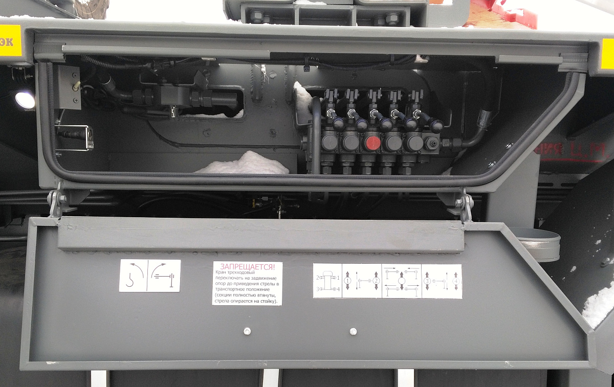 Автокран КС-55732 серии "СТ" обладает отличными грузовыми характеристиками за счет уникальной конструкции секций стрелы овоидного сечения, изготовленных с применением элементов из высокопрочной стали. Оптимальная компоновка крановой установки и опорный контур 5,75х6,3 метров обеспечивают хорошую устойчивость крану при работе в зоне 360˚.