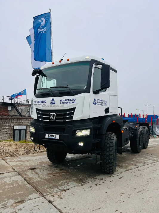 дв. КАМАЗ Р6 910.50-560, ведущие мосты КАМАЗ на рессор. подвеске, МКБ, EBS, ASR, кабина низкая, пружинная подвеска каб., кондиционер, холодильник, отопитель кабины, тахограф с СКЗИ, РК КАМАЗ 630, ИТИС, мультимедиа БИС, ДЗК, ССУ 3,5" |